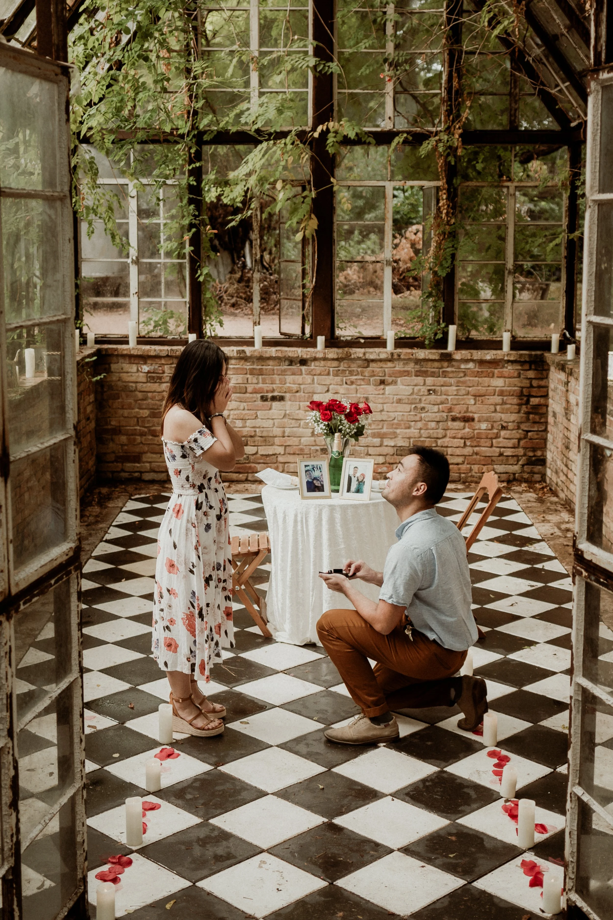 we can help design and execute your ideal proposal, tailored exactly to your preferences. whether you envision a custom picnic setup, a lush greenhouse setting, or a picturesque downtown balcony, we can bring your unique vision to life. just remember to bring the ring, and we will take care of the rest!